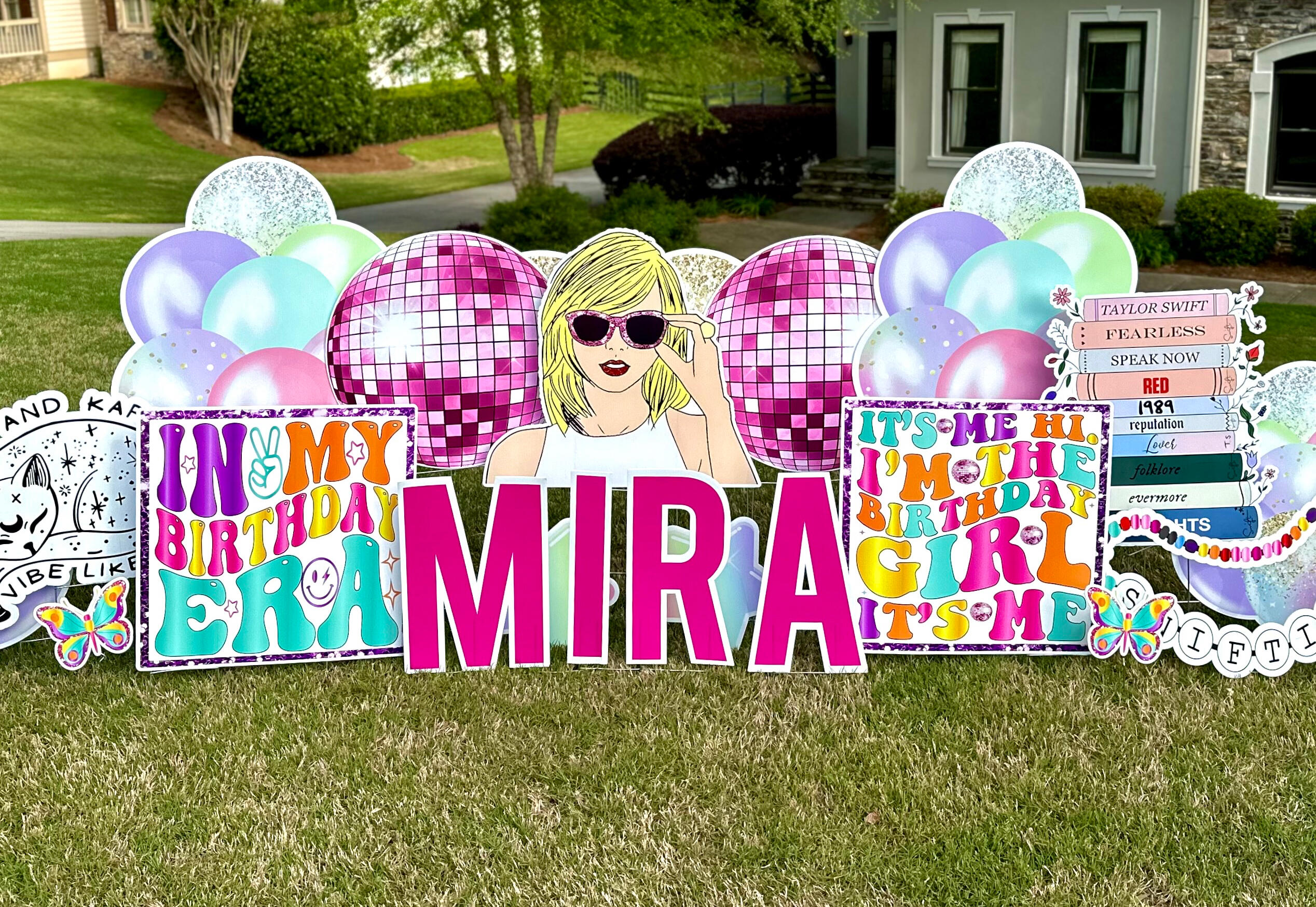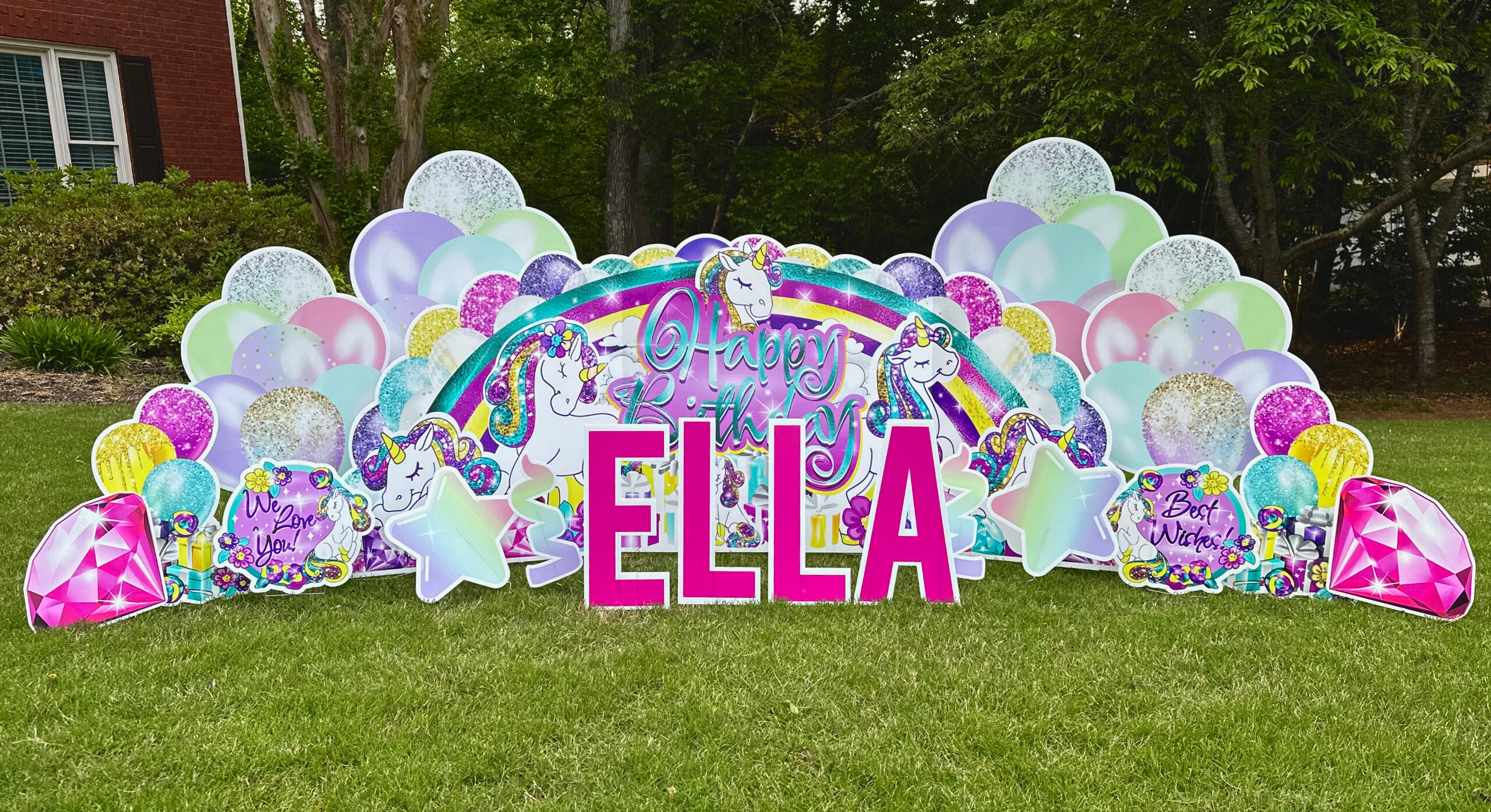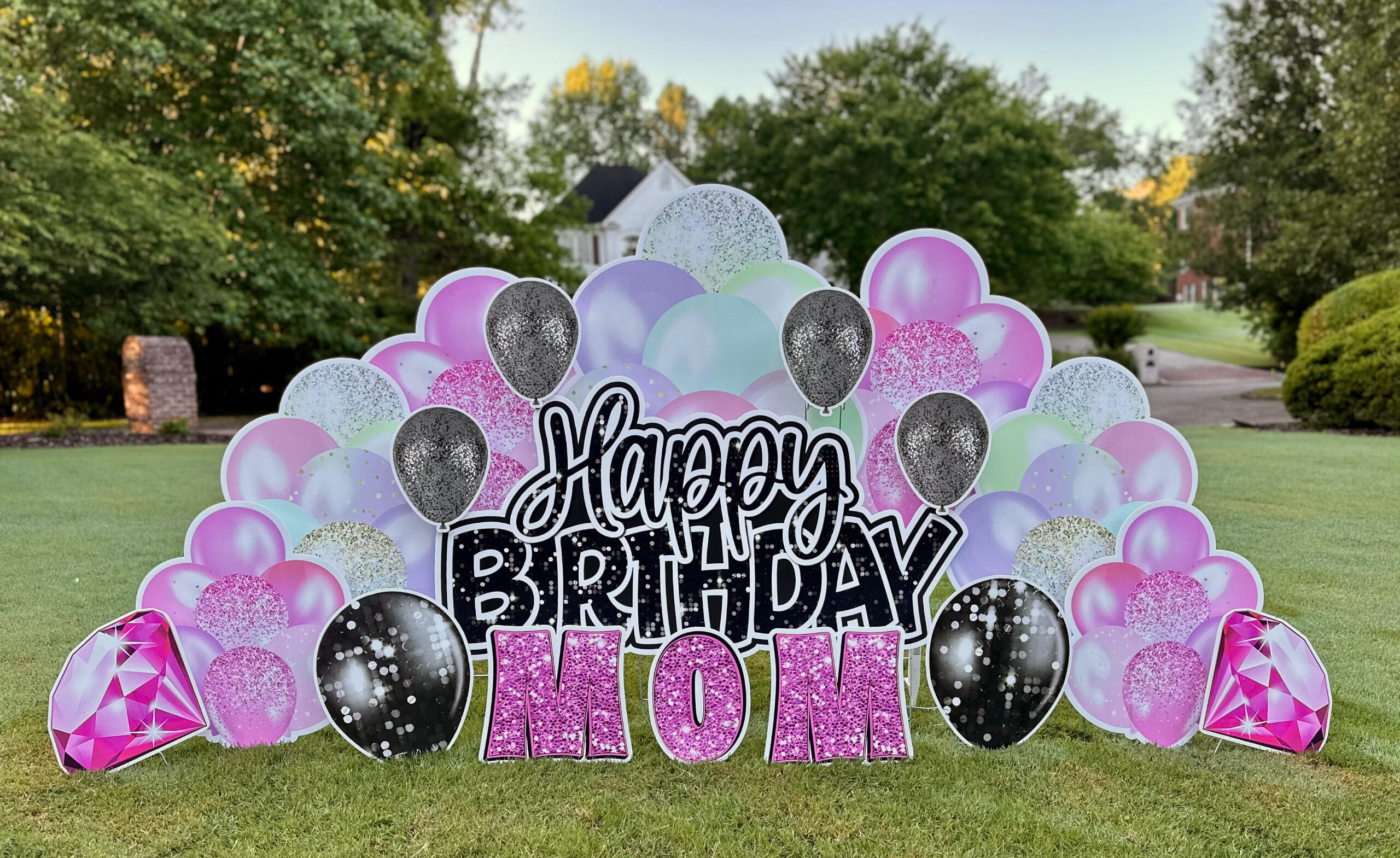 | Birthday Mini | $80 | 1. Small HB quickset sign | 2. Name | 3. 2 balloons/ balloon clusters | 4. 1 gift/cupcake on each side | (some have a cake & some do not) |
