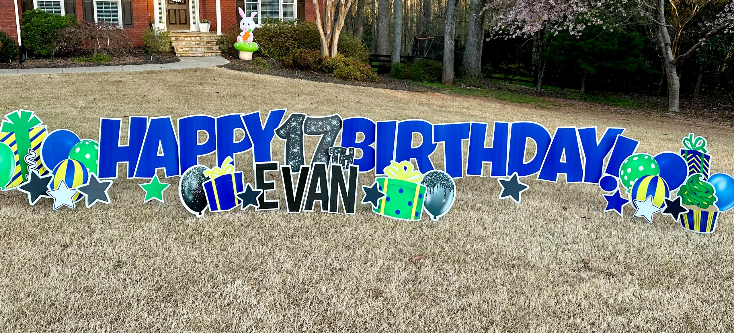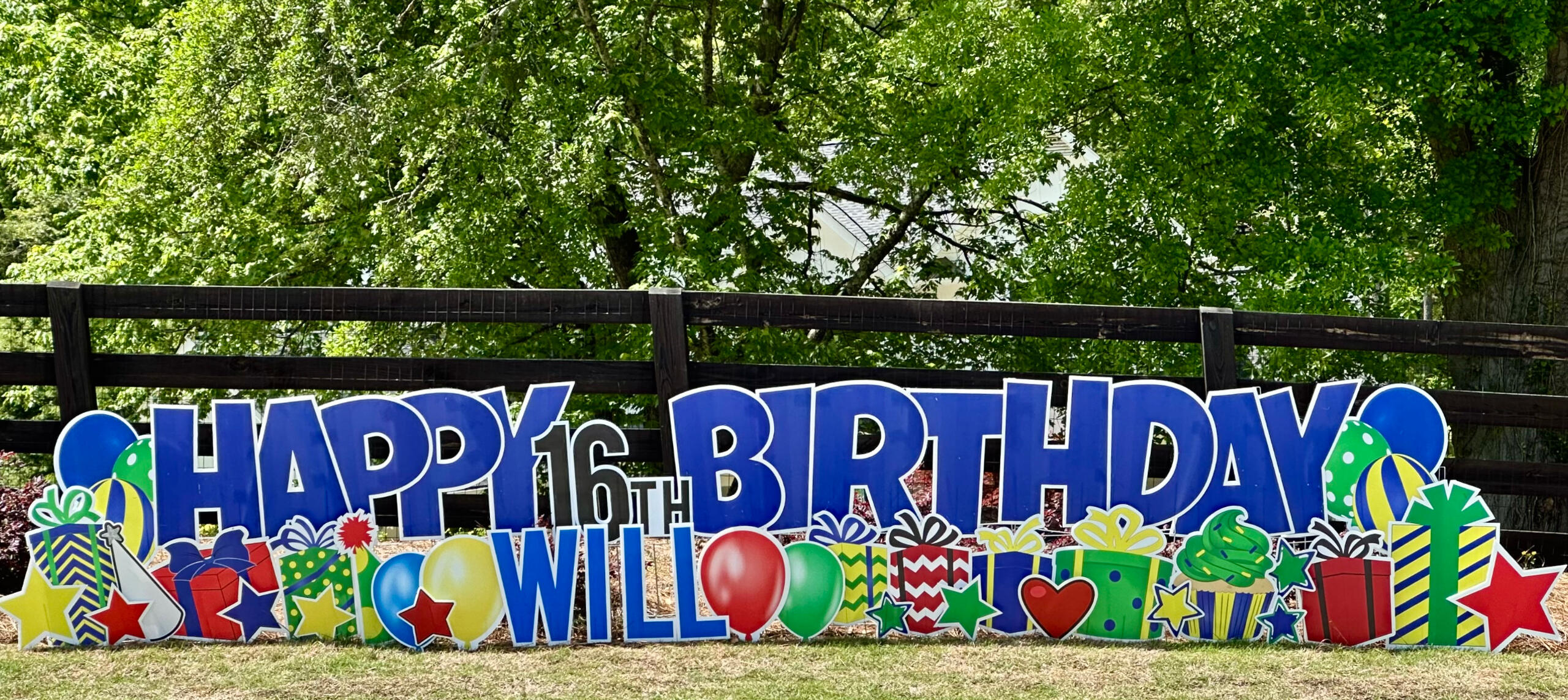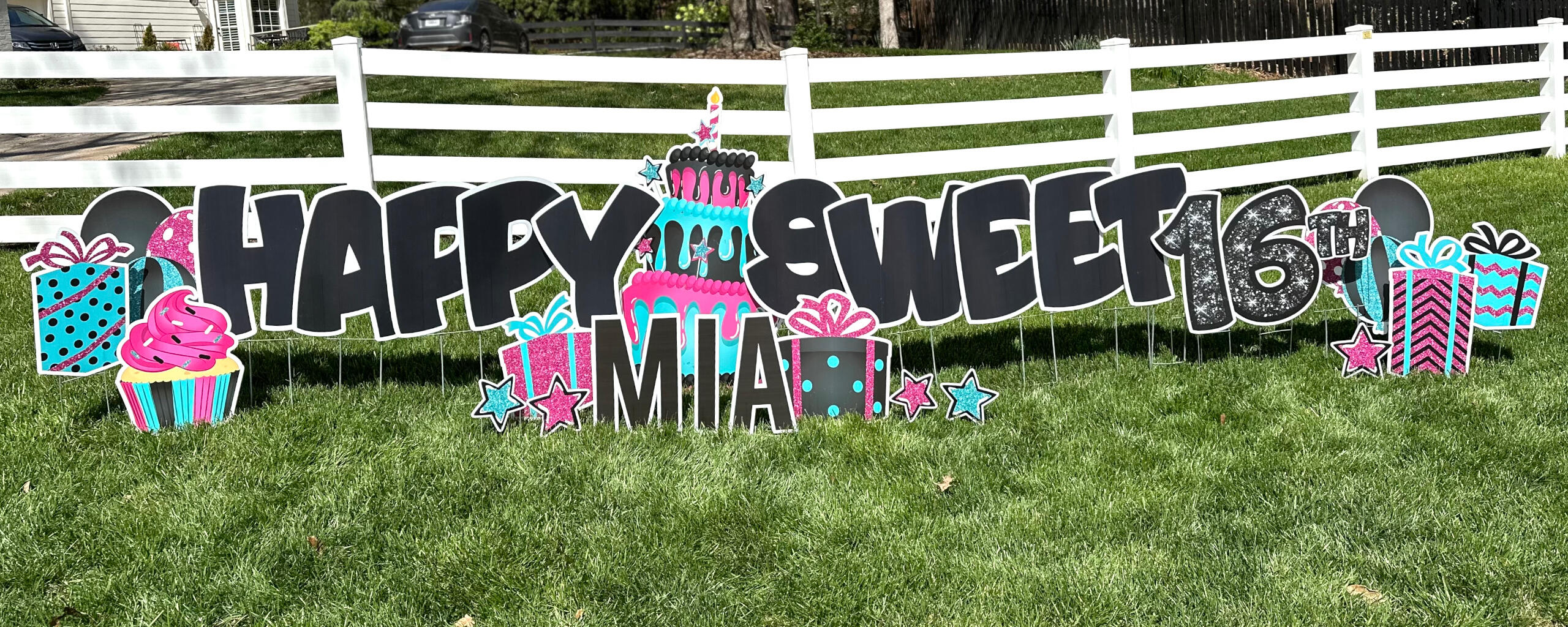 | Birthday Mini | $80 | 1. Small HB quickset sign | 2. Name | 3. 2 balloons/ balloon clusters | 4. 1 gift/cupcake on each side | (some have a cake & some do not) |